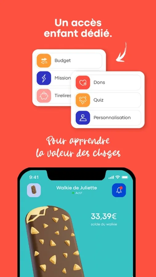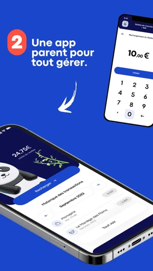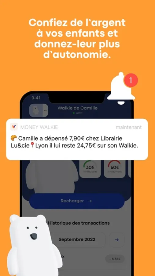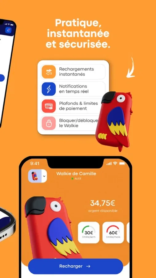 • Côté parents : gérez, rechargez le Walkie et suivez les dépenses en temps réel.
