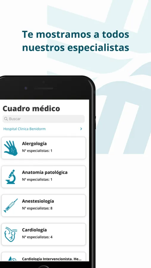 · Consultar el cuadro médico y de especialidades de Hospital Clínica Benidorm.