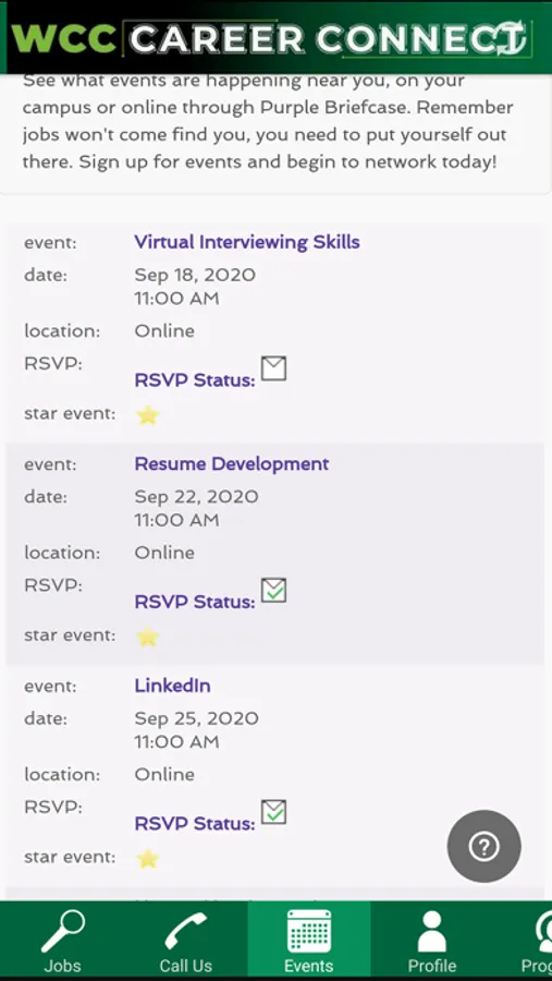 WCC Career Connect Screenshots