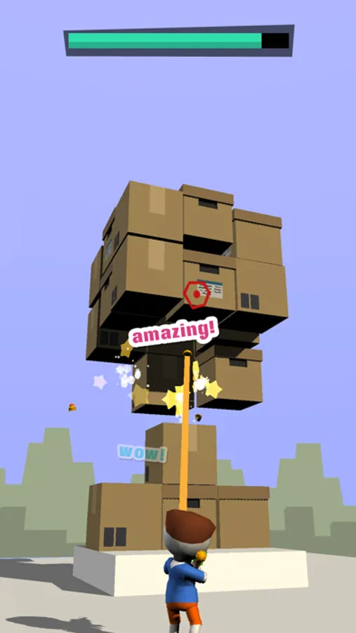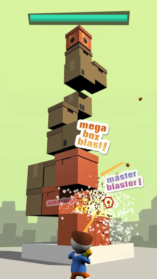 A game to crash the jumbo box fort down, each level a wild ride. Hit the bomb box for a mega bang, watch boxes fly high in the sky!