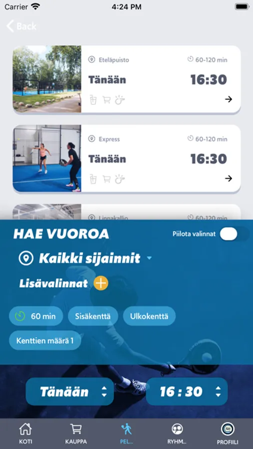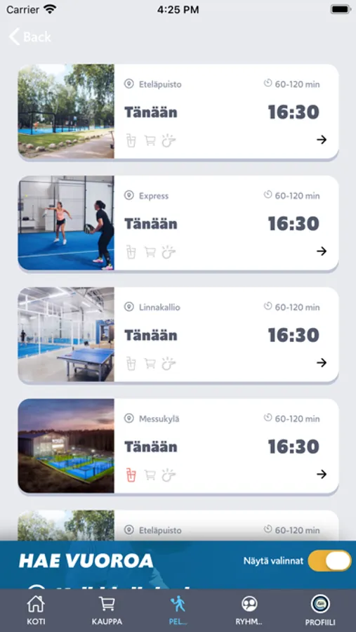 Varaa pelivuorosi näppärästi ja valitse mukaan sinua kiinnostavat oheispalvelut! Lisäksi applikaation välinekauppa kokoaa yhteen verkko- ja kivijalkakauppojen parhaat puolet, joten Padel Famissa pääset nauttimaan kokonaisvaltaisesta padelkokemuksesta!