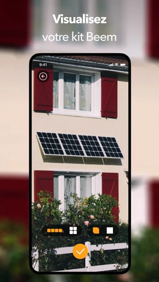 Utilisez le simulateur Beem pour voir le rendu de notre kit directement sur votre maison. Il vous suffira de quelques secondes pour projeter en 3D les panneaux Beem sur votre façade.