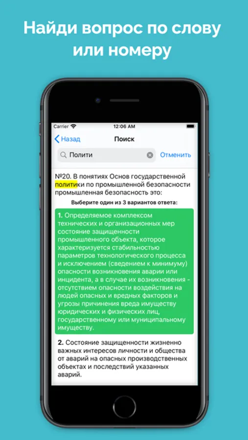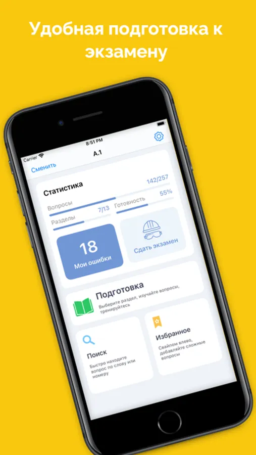 Все вопросы разделены на небольшие списки. Изучай вопросы и тренируйся. Сдавай экзамен на 20 вопросов. Легко находи нужные вопросы через поиск. Добавляй сложные вопросы в избранное. Отслеживай свой прогресс обучения.