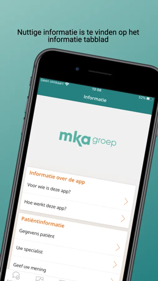 Mijn MKAgroep is geschikt voor alle patiënten van MKA groep. Mijn MKAgroep geeft patiënten op een veilige manier toegang tot het medisch dossier bij MKA groep. Kwaliteit van uw behandeling en uw ervaringen met MKA groep kunt u delen door de beschikbare vragenlijsten in te vullen.