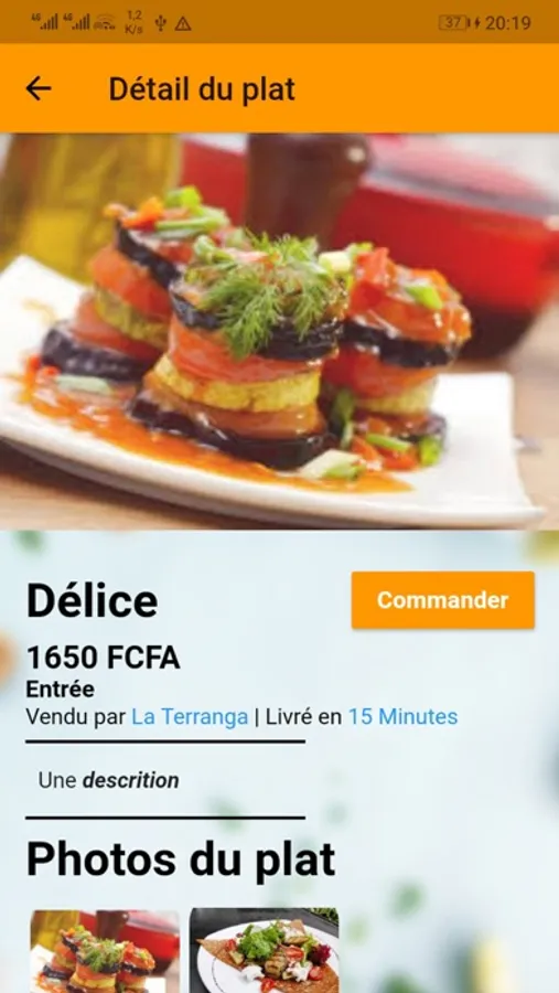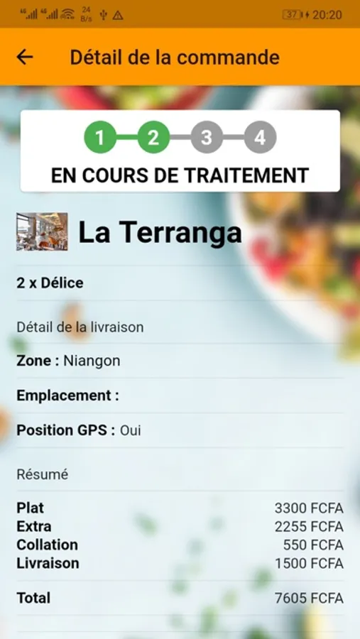 Filtrez par catégorie de repas, par types de restaurants, commandez vous verrez s’afficher votre adresse de livraison en vous géolocalisant, le délai de livraison estimé, le prix total et les frais de livraison inclus.