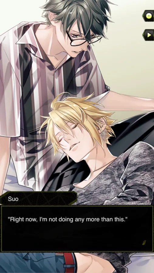 Emulate Thrill is a BL game with fixed pairings - meaning you stick with your partner. You consume tickets to continue progressing in the story.