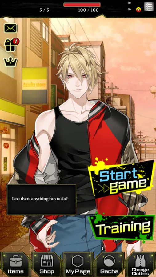 Emulate Thrill is a BL visual novel that requires you consume scenario tickets to progress through the storyline.