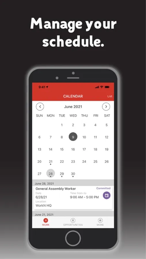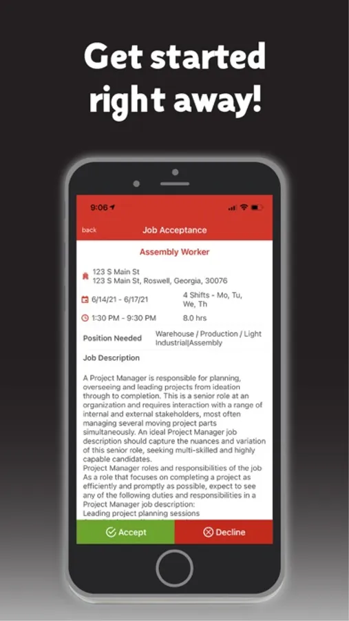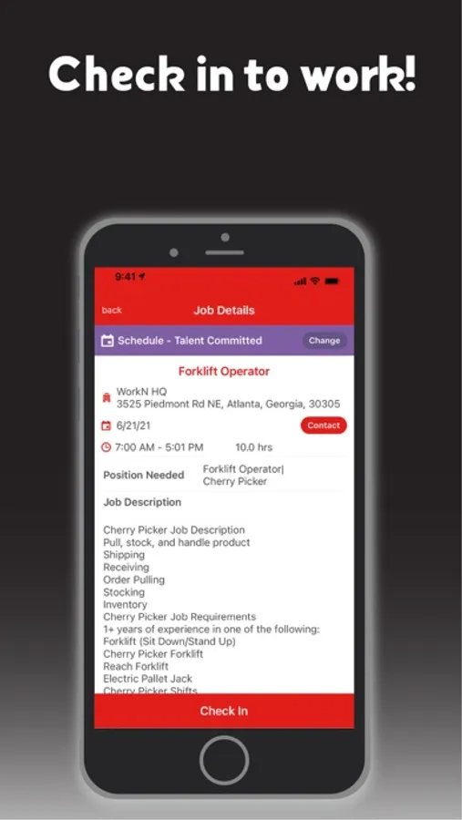 Then, once you start your new job, you can manage your schedule and check in for work. We will also work with you to ensure that you are set up to receive payment for your work.
