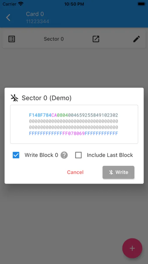 • Read and write sector data from the Mifare Classic 1K tag.