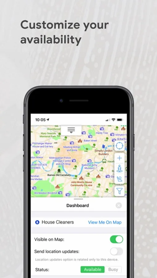 Read reviews, Exchange Private Messages, Call, Book. View a realtime map, or browse a list of all available Cleaning Service Providers near you, based on your location. No need to have a local phone number, no need to share your phone number. Use in-app live chat and in-app VoIP calls to communicate with your service provider.