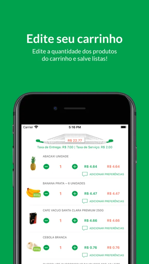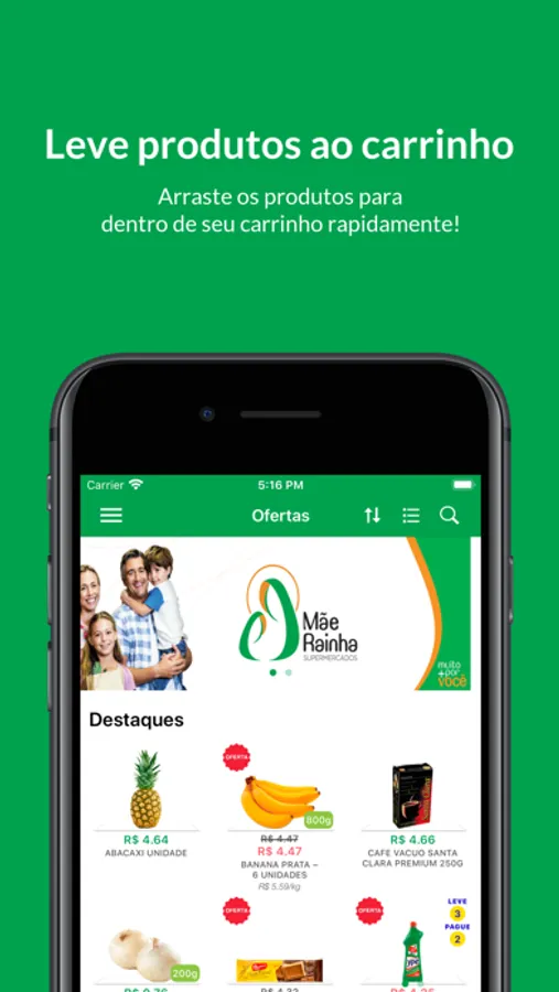 • Adicionar produtos no seu carrinho com um simples tocar e arrastar.