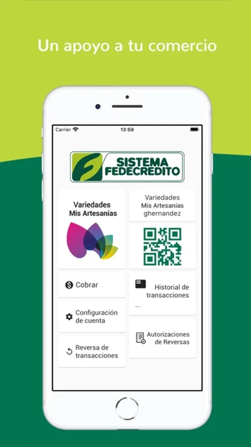 Para hacer uso de QR Comercio, descarga la aplicación y solicita la afiliación de tu comercio a tu Entidad del SISTEMA FEDECRÉDITO.