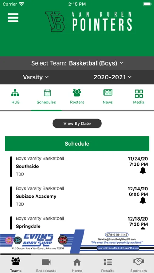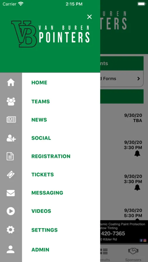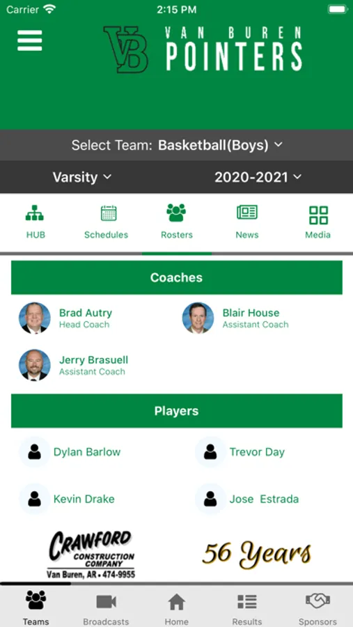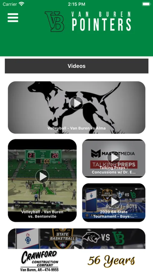 - Supporters: Special Thanks to local boosters and supporters of Van Buren Pointers Athletics with a directory including website and in-app calling.