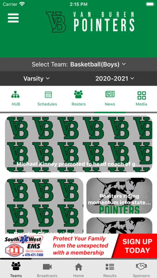 Content is managed by the Van Buren Pointers Athletics Department with help of high school students gaining valuable access to emerging and mobile technologies.