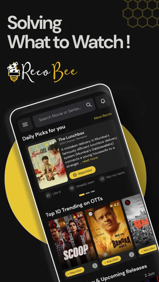 Still not convinced? RecoBee combines content across all OTT platforms and curates content just for you i.e. the ultimate movie and show recommendations customised to even what OTT platforms you subscribe to. You don’t get thrown in your face what the platform wants you to watch but we help you figure out what YOU want to watch.