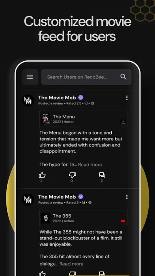 RecoBee is the best recommendation platform to discover movies and t.v. shows, chock full with reviews from fellow movie and show enthusiasts, and exciting playlists so you never have to wonder “What to watch” again. This along with the chance to recommend movies and connect with people with similar interests makes this the perfect platform for everyone.
