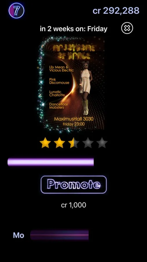 Promote stars and parties on the day they perform respectively take place. Then the PR action works twice as effective. At the beginning of the day you can see an equalizer animation on the particular icons.