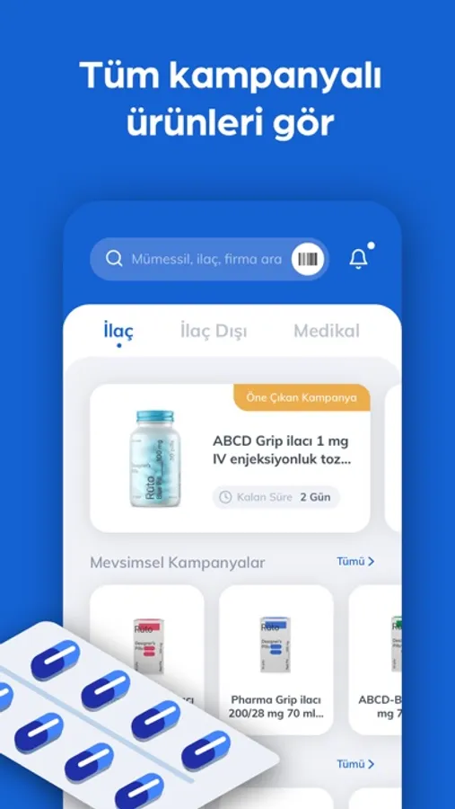 - Dilediğiniz ilaç, ilaç dışı ya da medikal ürünü ister barkod ister isim olarak sorgulayarak kampanyası olup olmadığını öğrenebilirsiniz.