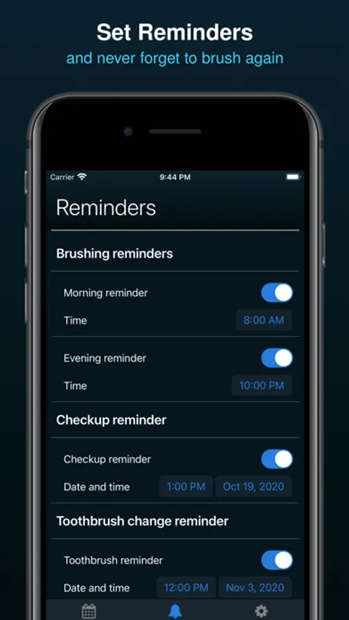 - Set reminders for brushing in the morning and in the evening