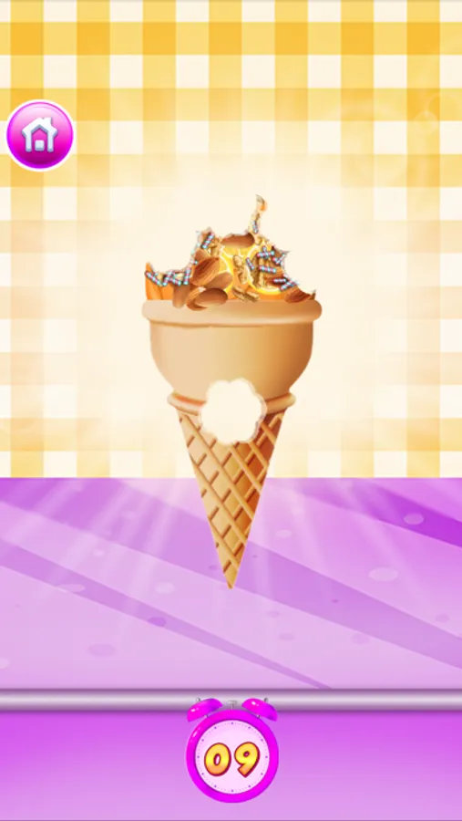 Either make ice cream in a cone, on a plate, or make a fruitcake. Choose a section and make whatever ice cream you want to make from beginning to end. Choose the fruit you want, accomplish all the steps, decorate it with the candy you want to freeze, and your ice cream is ready! Then eat it with pleasure in the given time. All transactions belong to you. Ice creams are waiting for you!