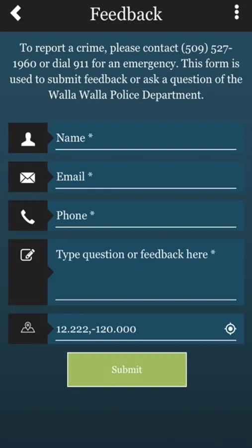 The Walla Walla Police Department is committed to providing an open and two-way communication link with the department. The department now offers a mobile app that provides the perfect way for you to receive notification of our news, missing persons, stolen vehicles, etc. The Walla Walla Police Department app allows you to easily submit feedback and place non-emergency calls to the department with the touch of a button.