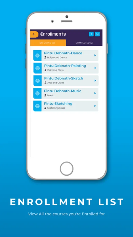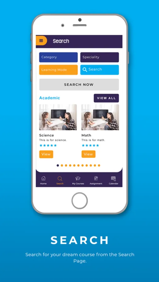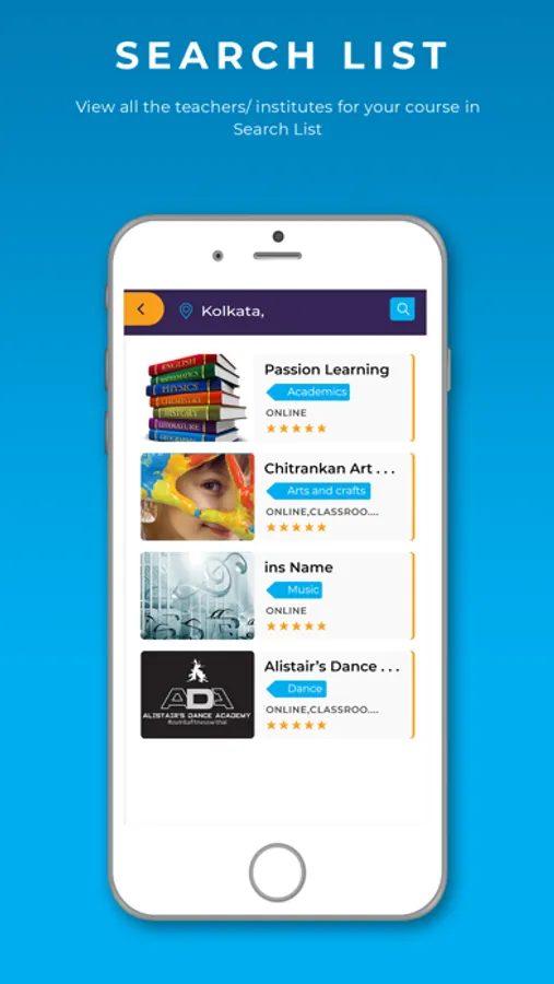 1. Search - Students can search for teachers or institutes, view courses offered and contact them from the app.
