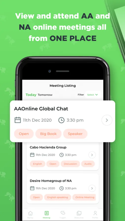 • View all online AA and/or NA meetings in one place, track your takeaways and attendance