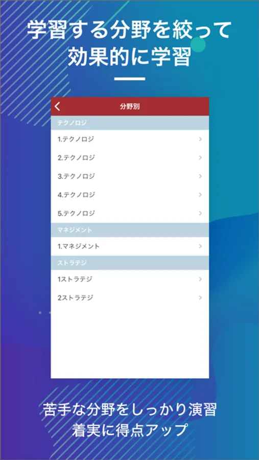 ・分野別-ストラテジ、マネジメント、テクノロジと分野ごとに問題演習