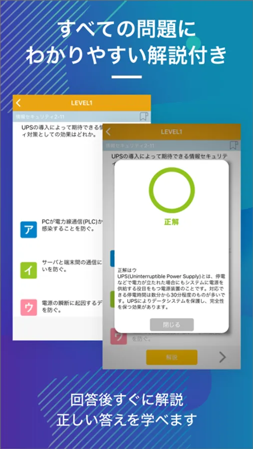 解説も充実し、アプリならではの隙間時間も逃さず効率的に勉強!これで次回試験もバッチリです!