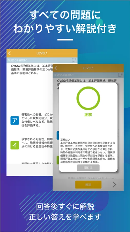 解説も充実し、アプリならではの隙間時間も逃さず効率的に勉強!これで次回試験もバッチリです!