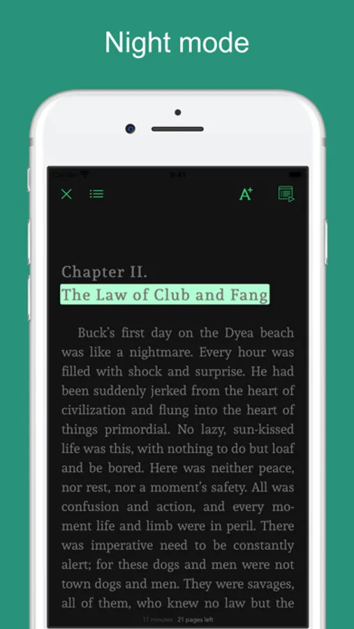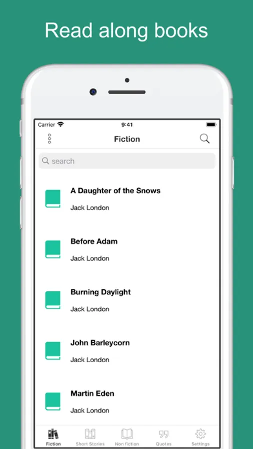 This app combines Jack London's novels and short stories with professional human narrations. It enables read-along feature: highlighted text synced with human narration.