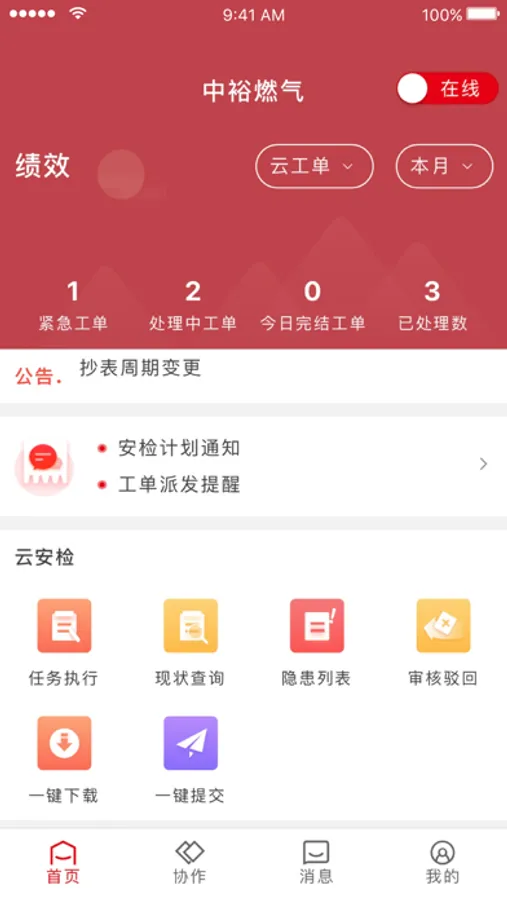 客服外勤,针对企业外勤服务业务,打造轻量级、全闭环、透明化的移动外勤作业平台,包含:云工单、云安检、云抄表。