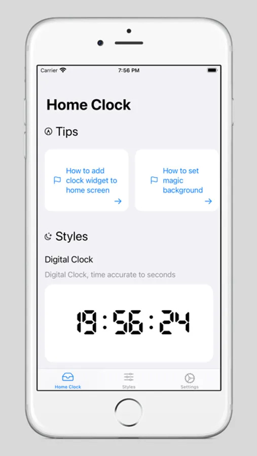 After installing home clock, you will be able to add two types of clocks: digital clock and flip clock. Among them, there are currently three styles of digital clocks to choose from, and you may long press to select other styles at any time.