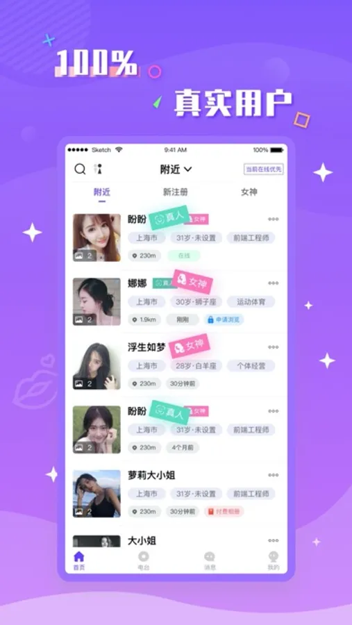 Give you priority to recommend nearby high-quality users, you can see the real-time distance of each other and the nearest login time