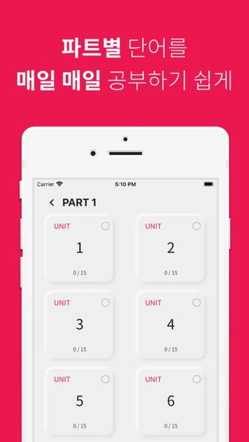 - 학습 진행률 설정/초기화: 파트 또는 유닛을 길게 눌러 학습 진행률을 설정하거나 초기화할 수 있습니다.