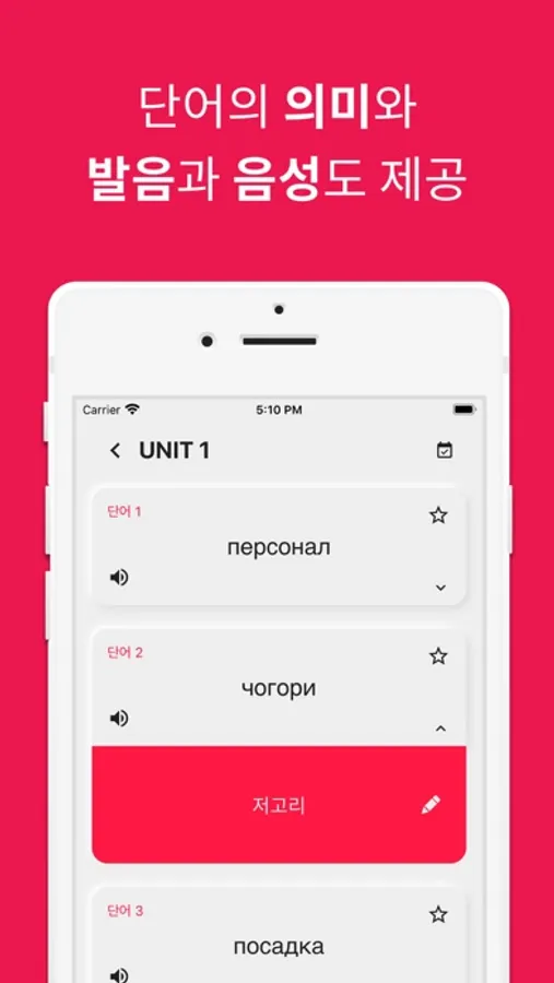 - 파트별, 유닛별, 전체 러시아어 단어를 복습하는 기능 제공