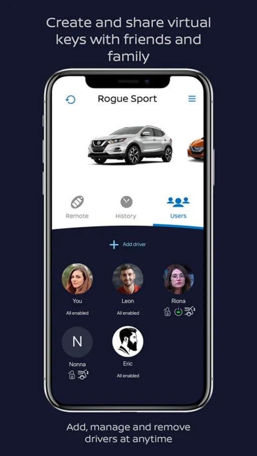 Please note: The Nissan Virtual Key requires the installation of a Nissan Virtual Key device on the vehicle.