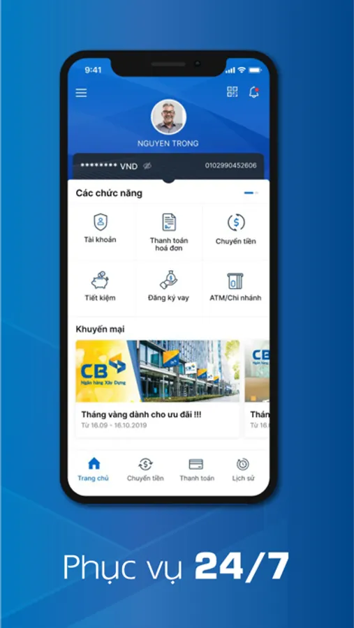 - Chuyển tiền trong và ngoài hệ thống CB, chuyển tiền NHANH liên ngân hàng 24/7 qua số tài khoản và qua số thẻ ATM.