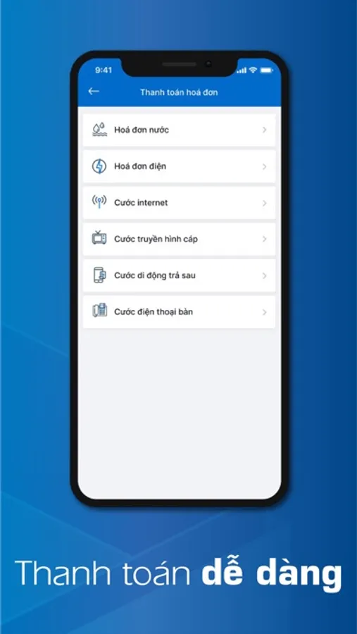 - Thanh toán hóa đơn dịch vụ như: cước di động trả sau, tiền điện, Internet, vé máy bay....