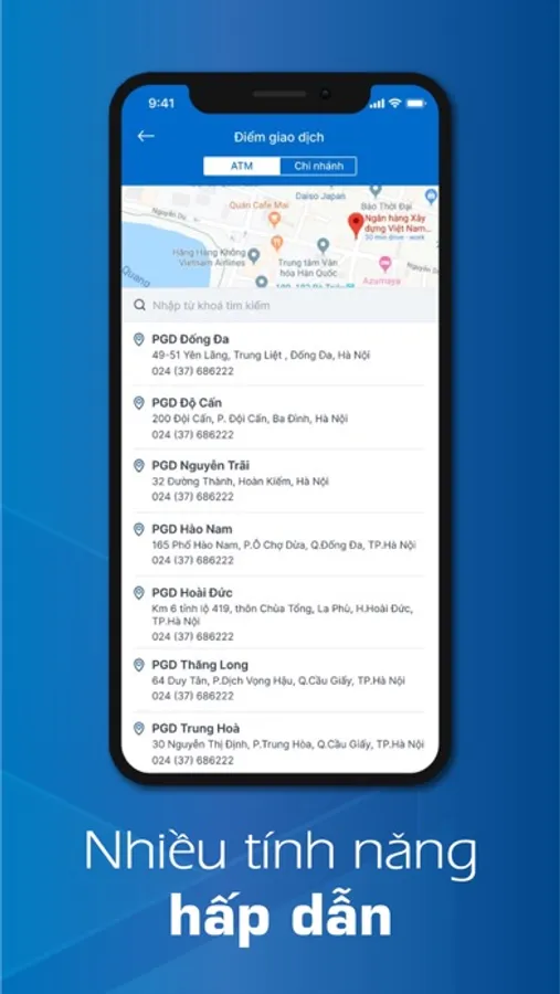 - Tra cứu thông tin địa chỉ ATM/Chi nhánh, tỷ giá, lãi suất, thông tin khuyến mãi...