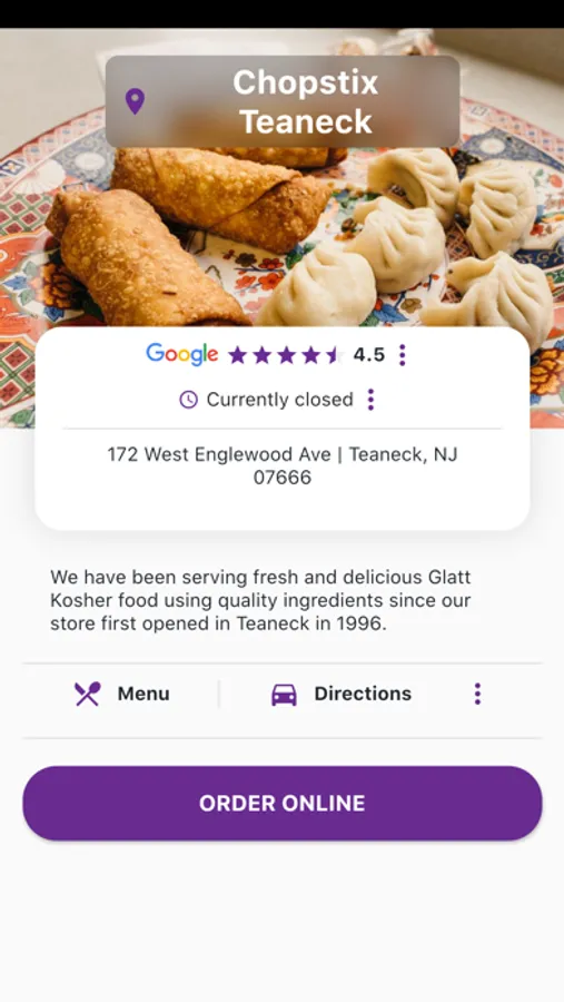 Chopstix Teaneck restaurant app has many different functions. It contains an online ordering link, restaurant images, address and driving directions, store hours, menus, and many other great features.