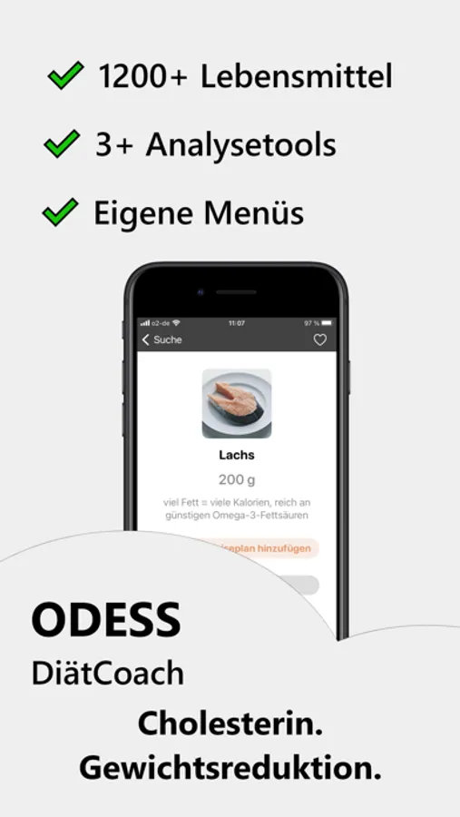Mache aus einem vagen Gefühl zu deinem Essen eine klare Information. Nur so kannst du konkret etwas beim Essen ändern und deine Vorgaben erreichen. Der ODESS DiätCoach zeigt dir in wenigen Augenblicken, wo deine Ernährungsweise schon zielführend ist und wo du noch Luft nach oben hast… Egal ob Einsteiger oder alter Hase, die App unterstützt dich dabei, kurz- und langfristig dein Ziel im Blick zu haben und so nachhaltig dein Essen zu beeinflussen.