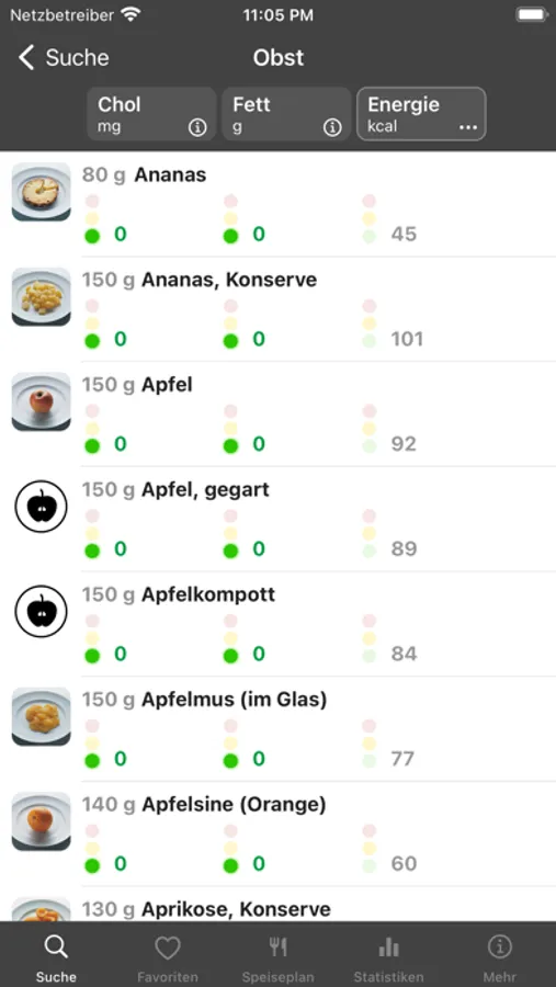 • Detaillierte Angaben zu 1200+ Lebensmitteln