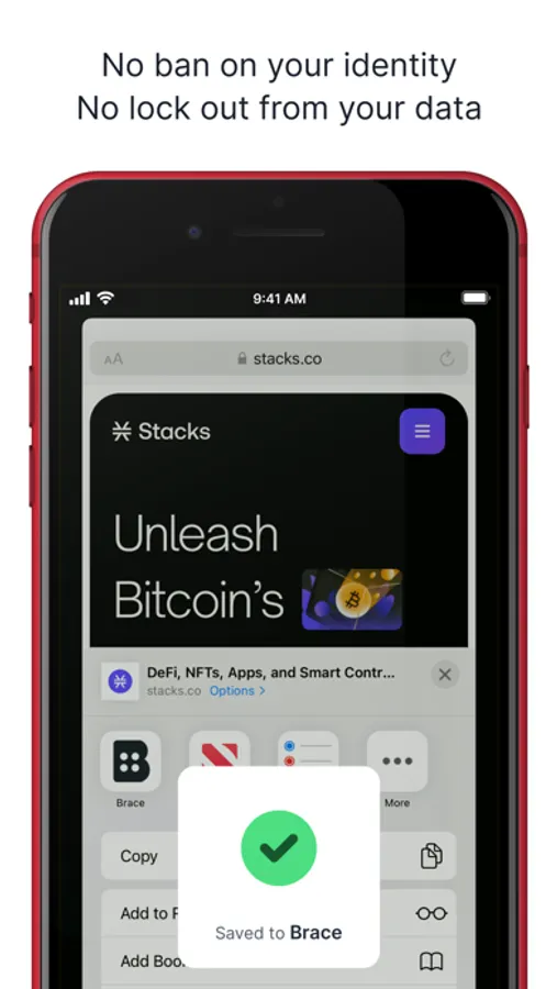 Bring back control of your identity and your data one link at a time with Brace.to, powered by web 3.0 technology from Stacks to make sure that your privacy cannot be compromised. Not just that Brace.to doesn't be evil, Brace.to can't be evil.