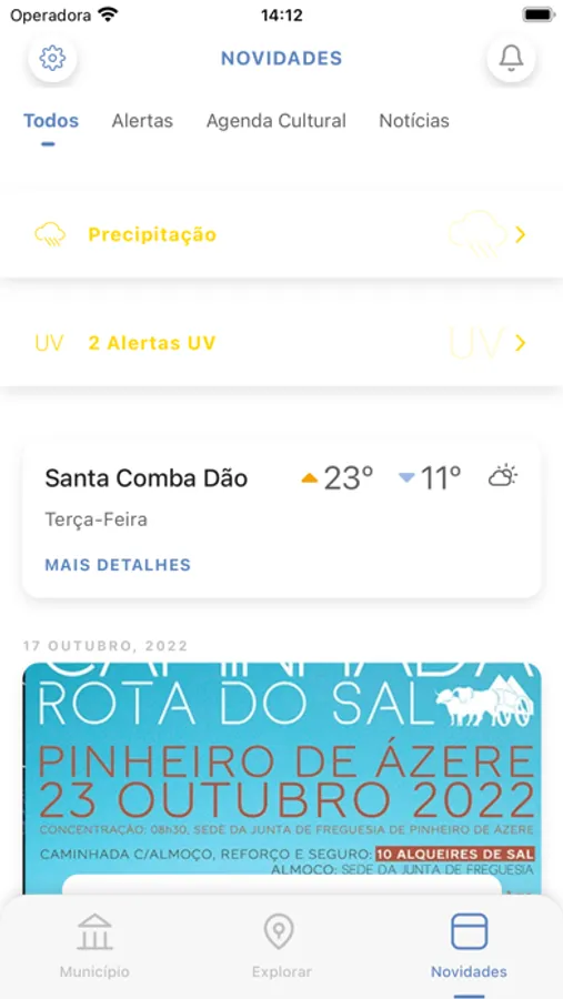 A aplicação oficial do Município de Santa Comba Dão para ficar a par de todas as novidades, alertas, pontos de interesse, trilhos e até comunicar diretamente com o seu município através da sua área pessoal ligada diretamente aos serviços online. Venha conhecer e juntar-se à comunidade.