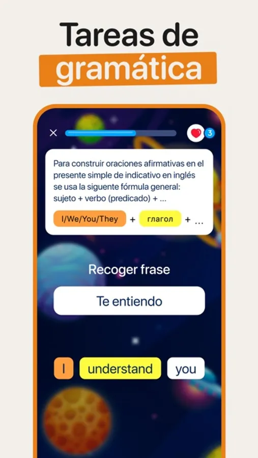 English Galaxy ofrece aprender inglés mediante construcciones gramaticales. ¡Pruébalo y descubre que aprender inglés puede ser efectivo y divertido!