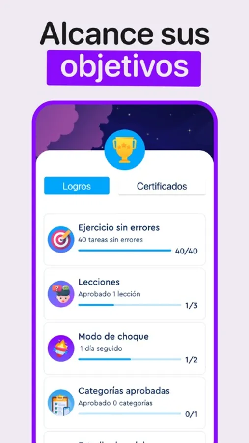 50 lecciones para cada nivel, más de 30 000 tareas para practicar la gramática, varios tipos de lecciones que entrenan todas las habilidades necesarias.