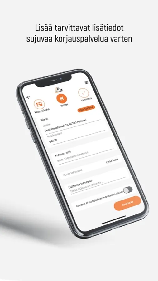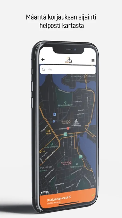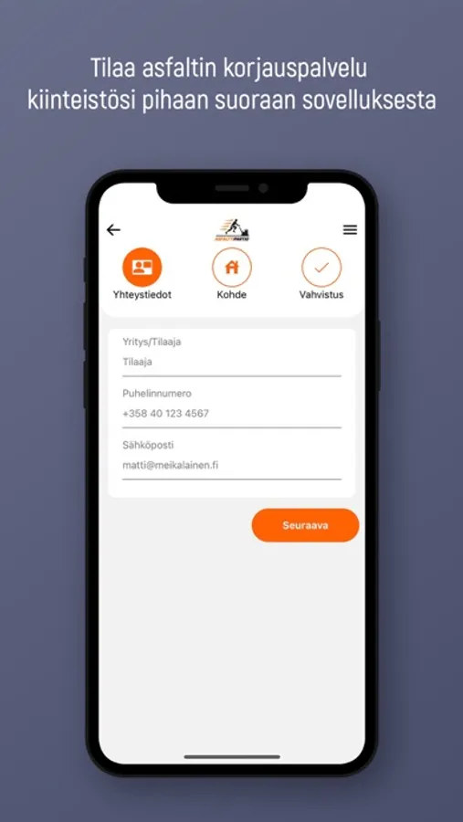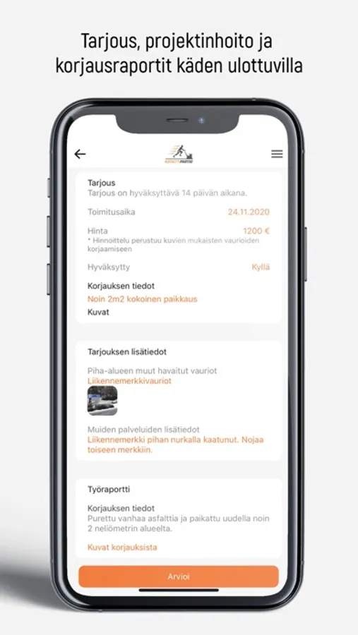 Sovelluksen avulla hoidat kiinteistöjen pihojen asfaltinkorjauksen helposti. Koko tilausprosessi, korjauksen seuranta ja palautteenanto onnistuu suoraan sovelluksen kautta.