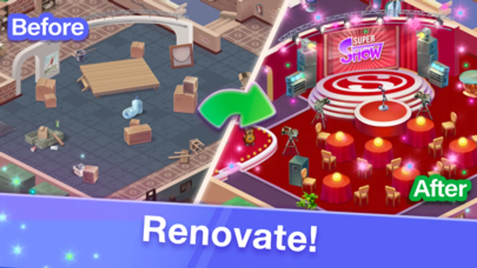 Film the most popular TV shows in your own studio! Design film sets, solve mind-blowing match-3 puzzles to get all the decoration you need to set up your studios and manage the most successful TV projects loved by millions of viewers!