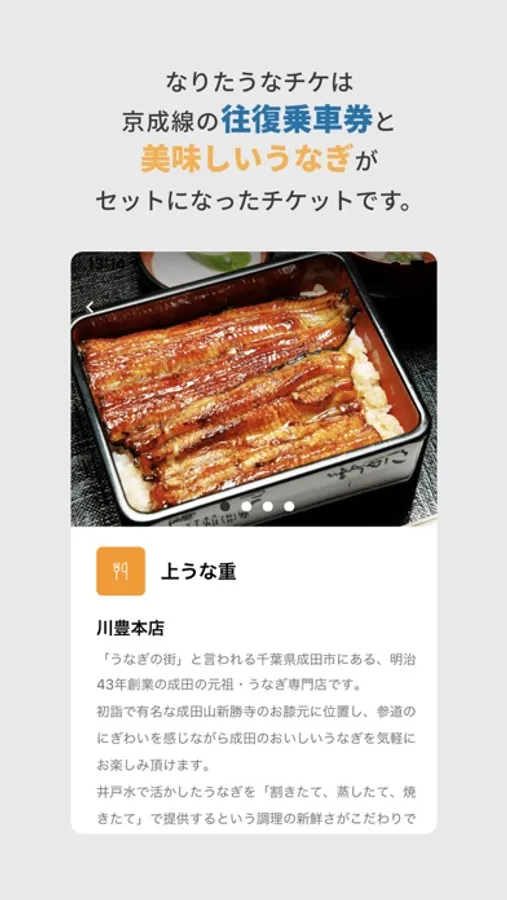 チケットの購入により、京成線、たべる券(うな重)が利用できます。